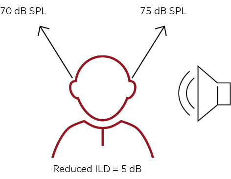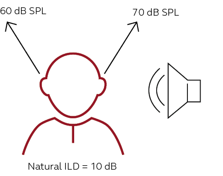空間認識は、正しい ILD を計算し、両耳間のデータ交換に基づいて 2 つの補聴器のゲインを調整して保持します。