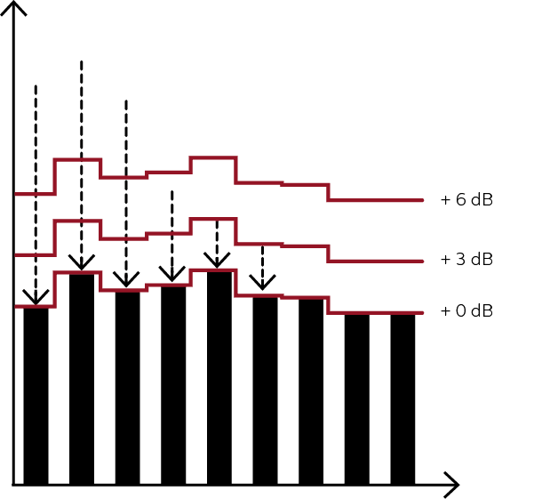 | オフ:風切り音は検知しません。環境音レベルを監視します | オフ:柔らかい風切り音を検知します。環境音レベルを保存します | オン:中度から強度の風切り音を検知します。保存した環境音レベルにゲインを軽減します |