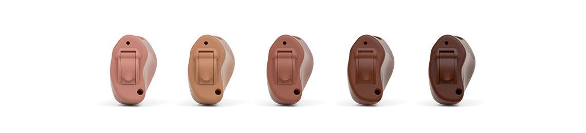 Våra i-örat-modeller finns i ett antal olika hudfärgade nyanser, olika unika varianter och effektklasser med förbättrad trådlös funktionalitet, öra-till-öra-kommunikation och synkroniserade kontroller på ReSound LiNX Quattro CIC, MIH och ITE.
